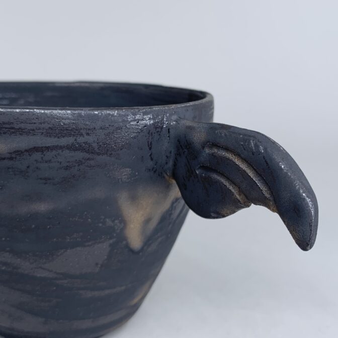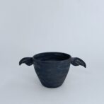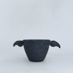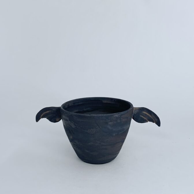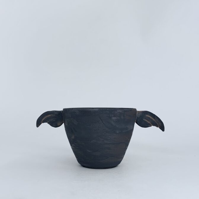 大きく羽ばたく天使の羽を携えたマットブラウンの植木鉢です。