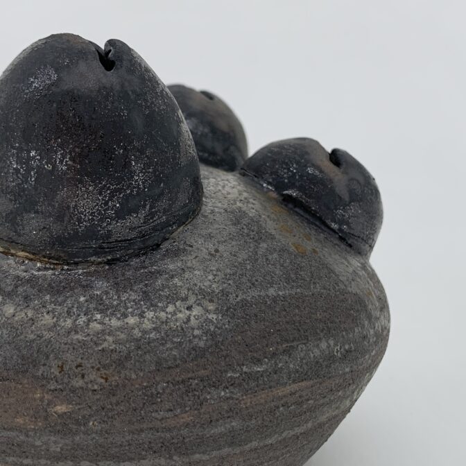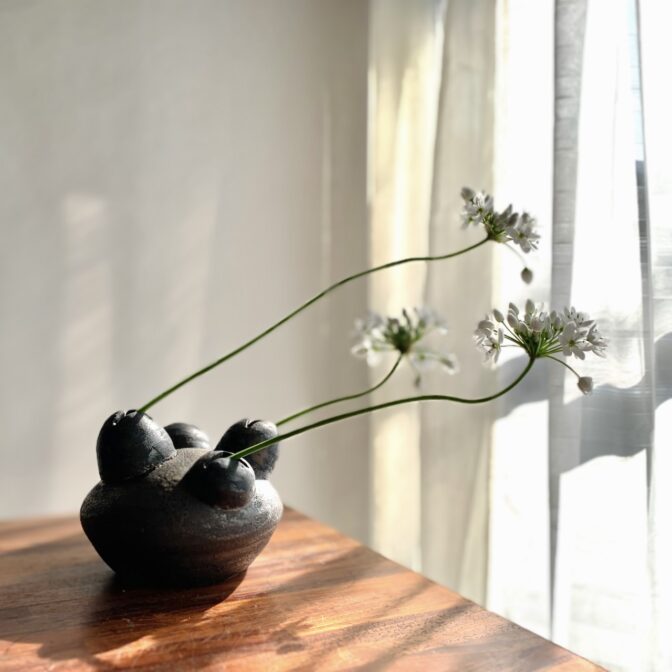 釉薬の材料は、本体と花器口の突起部分を変えて変化をもたらせています。