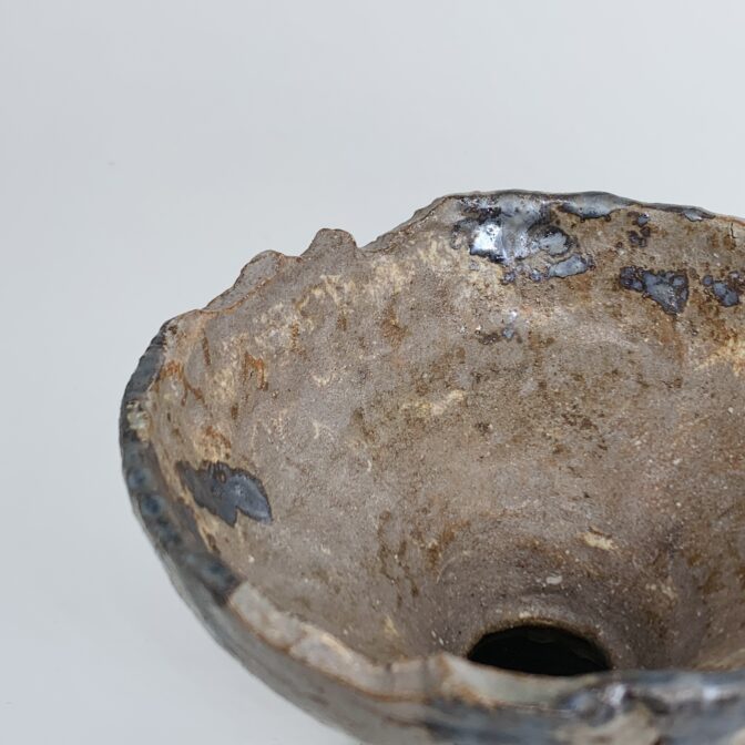 素材の他にも、自然に削れたような口縁と人工的な模様が施された高台がギャップを生んでいます。