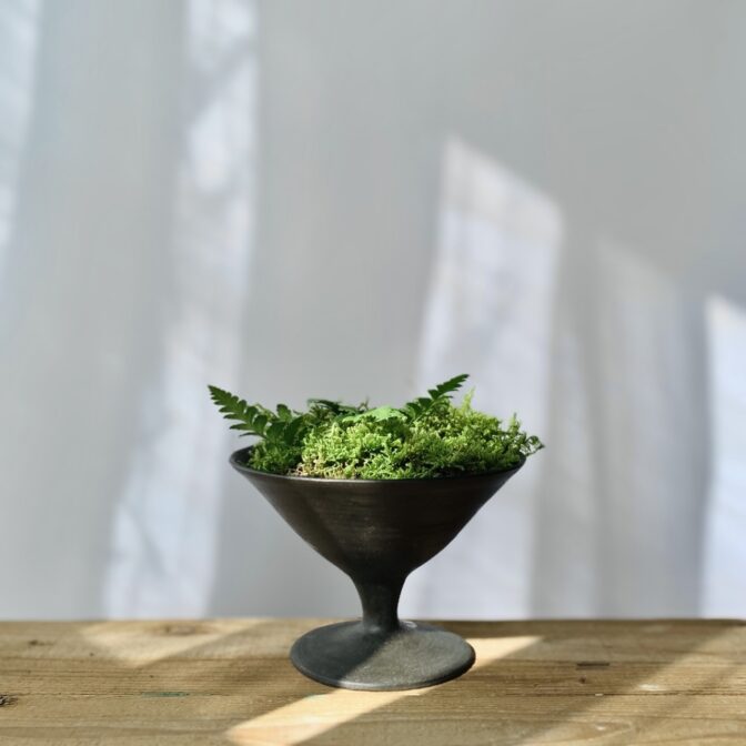 花器 | vase花器 compote 2 (black) 通常価格 9900 円 (税込) 購入はこちら ※商品価格以外に別途送料(1回の注文につき1,000円)がかかります。 説明 size: 約φ15㎝ ✕ H10.5㎝ どんな部屋でも違和感なく置ける、やや大きめのコンポート型花器です。 特に植物に特化した物ではなく、使いやすさと取り扱いやすさを主にした花器です。 深さがないので花材によっては花留めが必要になります。 コメントは受け付けていません。