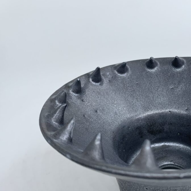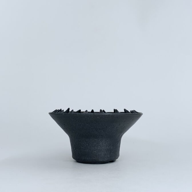 斜めに広がった口縁の内側に沿うようにトゲトゲを並べました。