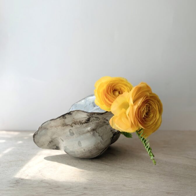 変わった形状なので花材選びも難しいと思いますが、パンチの効いたアレンジになるのは間違いなし!
