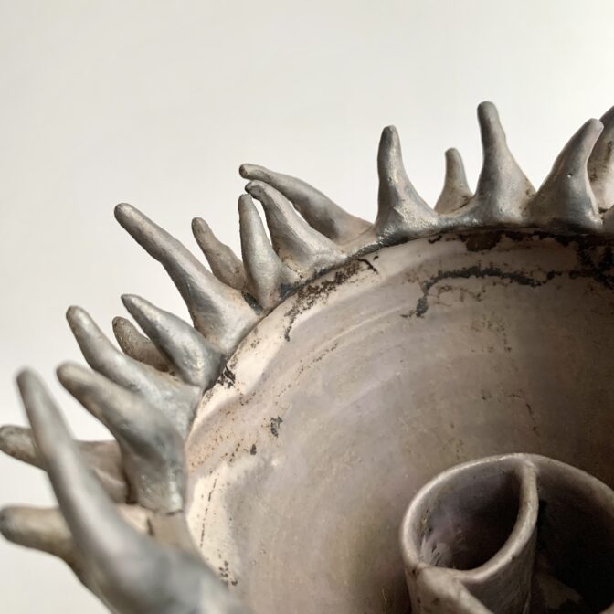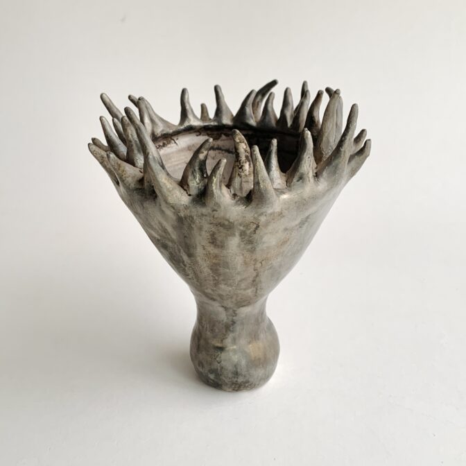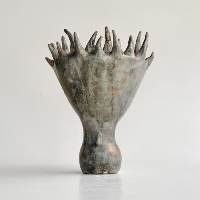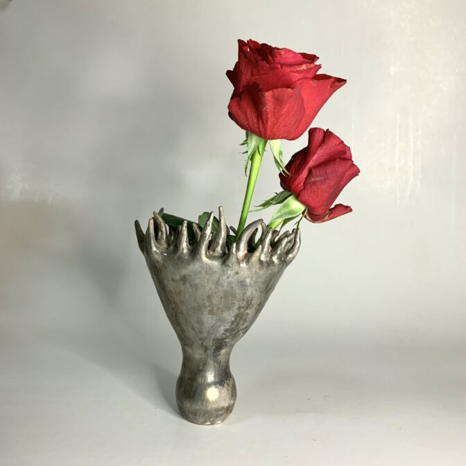 どんな花でもゴージャス感があり、お花がない時もプラチナゴールドなのでアンティークなイメージで存在感があります。