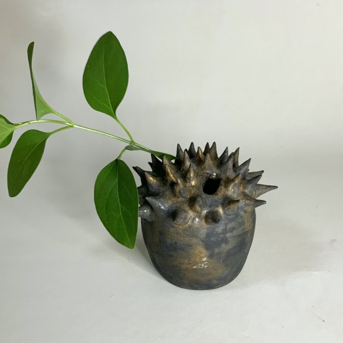 花器 | vase一輪挿し eucalyptus flower vase (bronze) 通常価格 8800 円 (税込) sold out ※商品価格以外に別途送料(1回の注文につき1,000円)がかかります。 説明 size: 約φ8㎝ ✕ H9㎝ ユーカリの花をモチーフにした小さな一輪挿しです。 花器口が二箇所あるので、小花をワサワサとたくさんも挿せます。 画像でもありますように花材の種類、色によってイメージの違いをご覧ください。 コメントは受け付けていません。