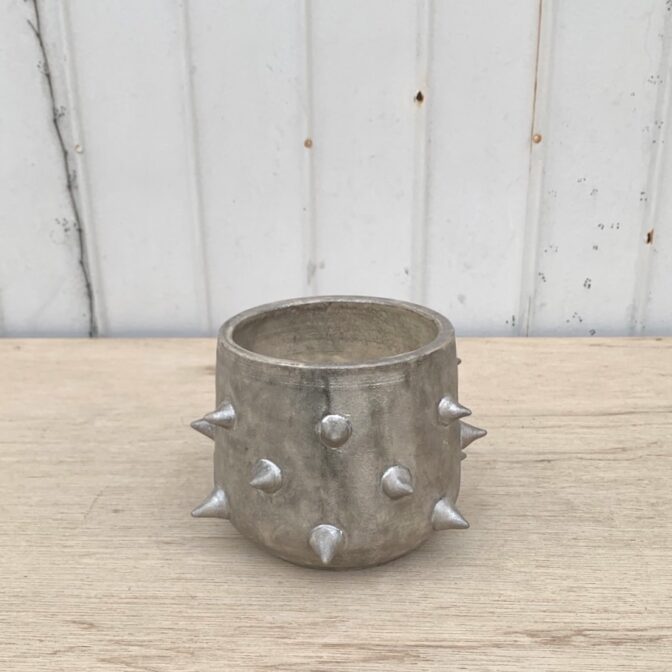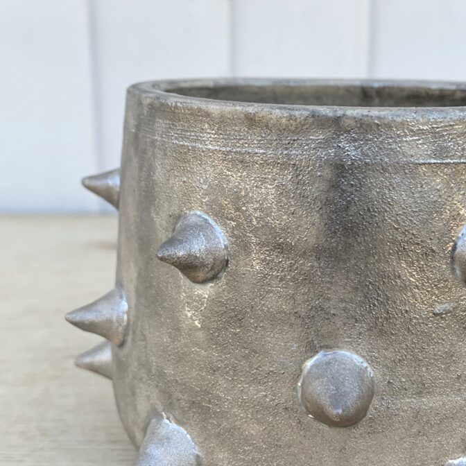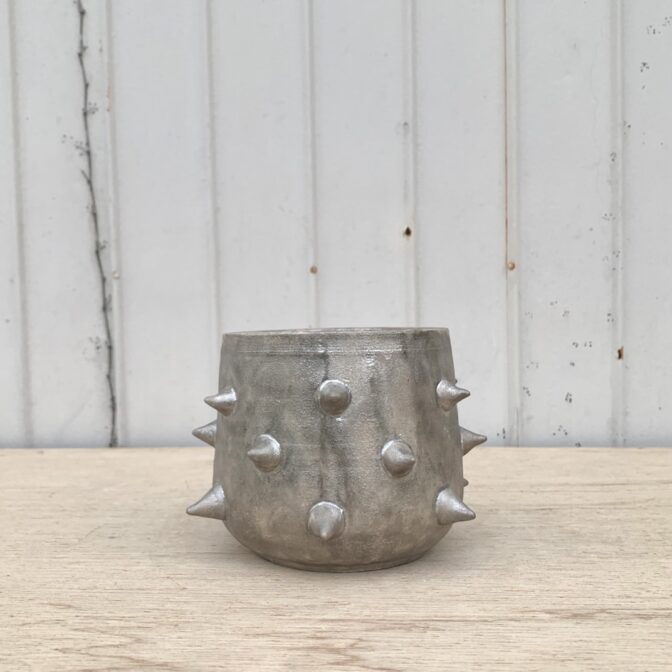 植物を引き立てる褪せたシルバー、トゲトゲのデザインが特徴です。