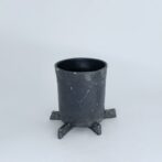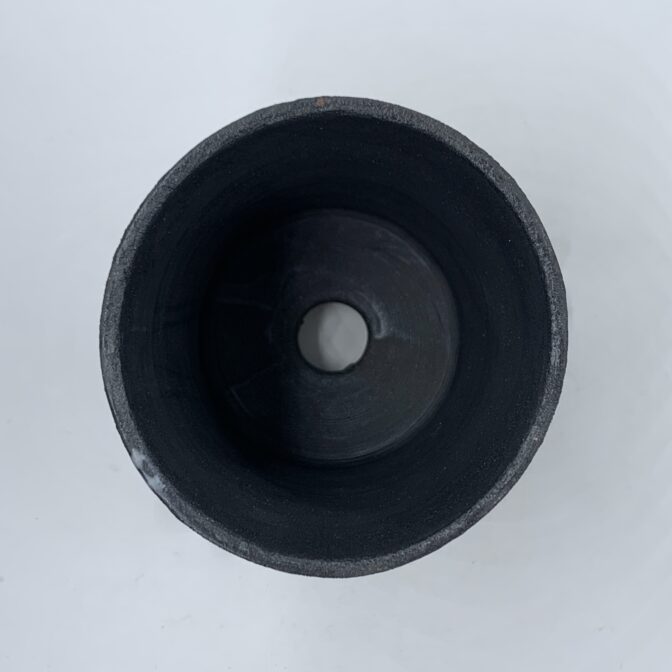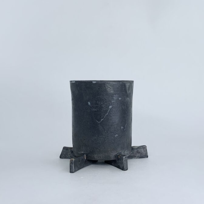 マットブラックの鉢と、無機質な鈍いシルバーの高台がモダンなイメージです。