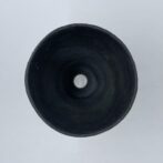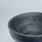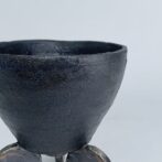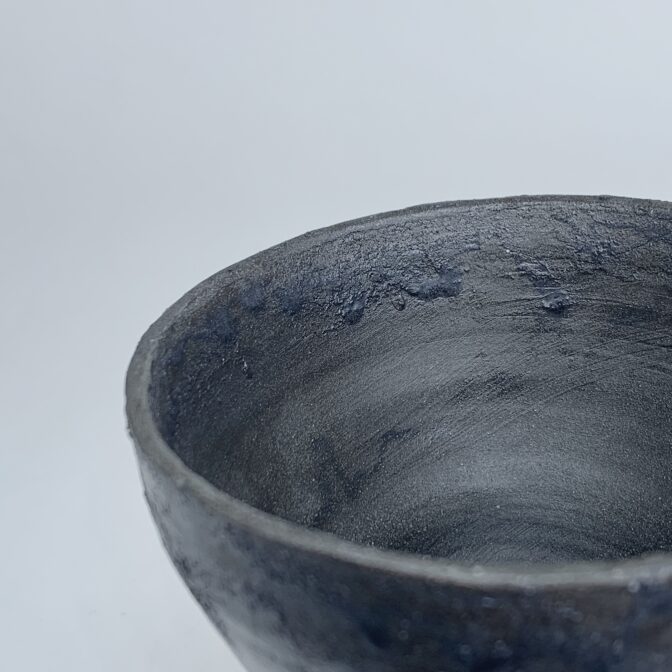 碗形の本体に黒泥を薄くペイントし、極薄めの灰釉薬を施しています。