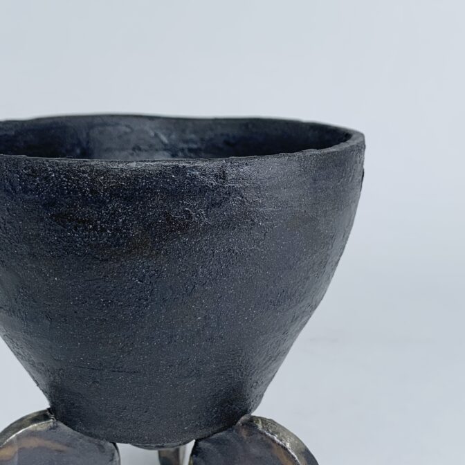 3つのメタルコインの上に鉢が載っているようにも見えます。