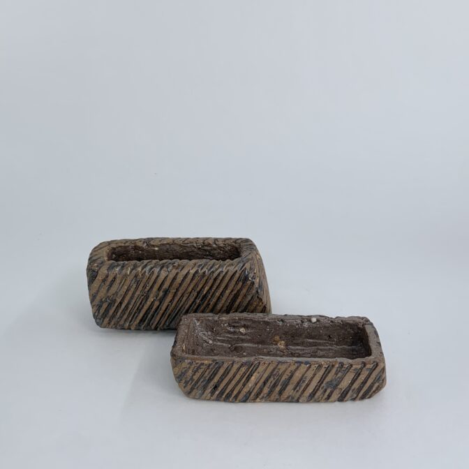 横から見ると斜めに傾いた長方形の植木鉢です。