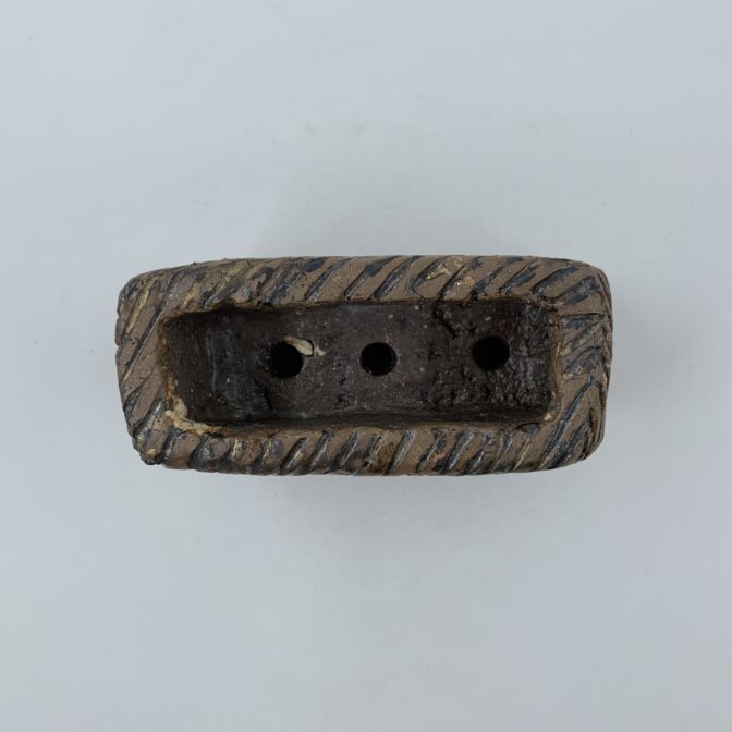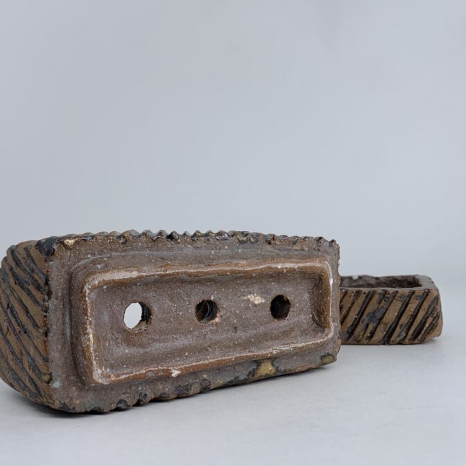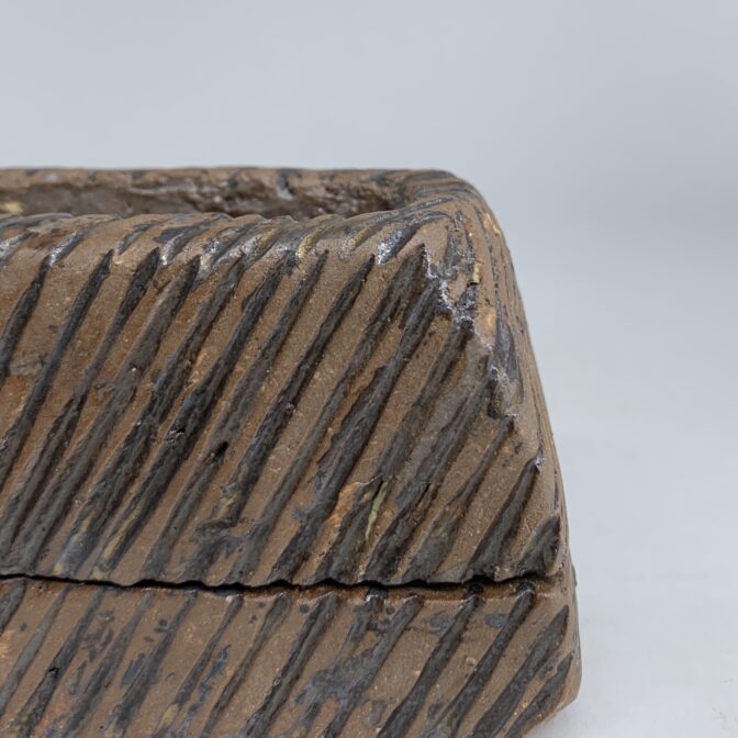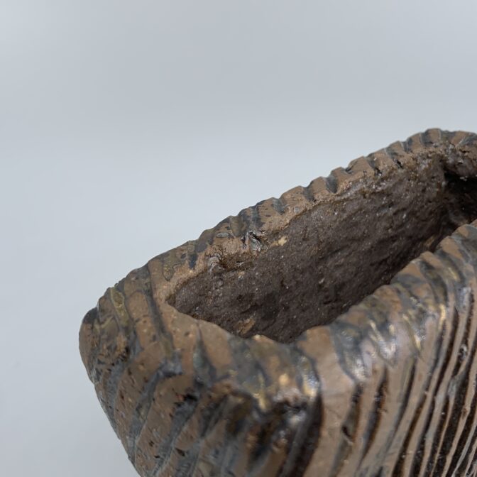 溝にはブロンズ釉をかけているので、凹部分に溜まる釉が所々ゴールドに輝きます。