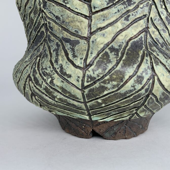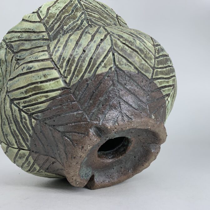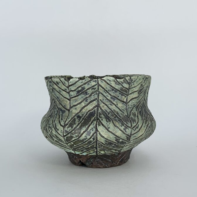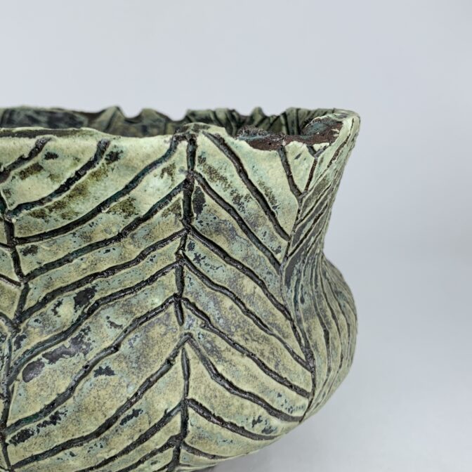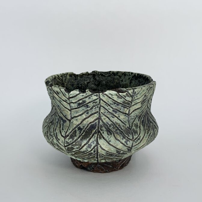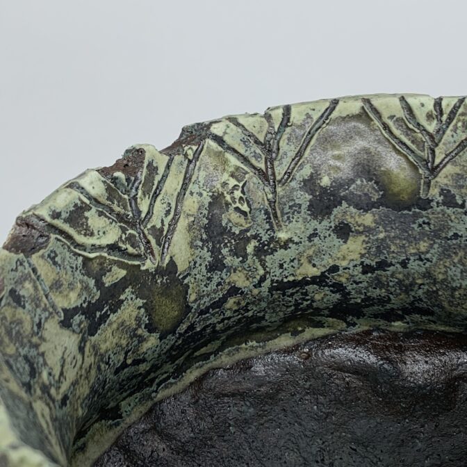 趣のあるグリーンの濃淡、使い込まれたような口縁も特徴です。