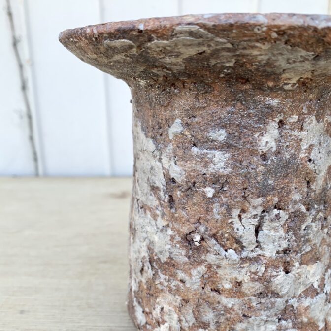 手捻りでリム付きの深型円柱型の植木鉢です。