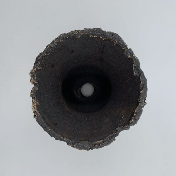 柔らかなシルエットにゴツゴツとした表面を合わせた、ギャップのある植木鉢です。