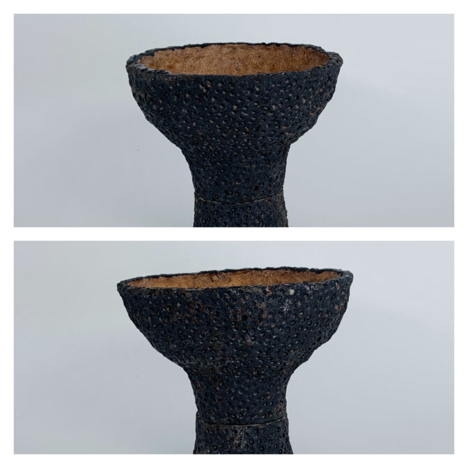 原土の特性を生かした制作上、手びねりの過程で生じたゆらぎを楽しんでいただけたら嬉しいです。