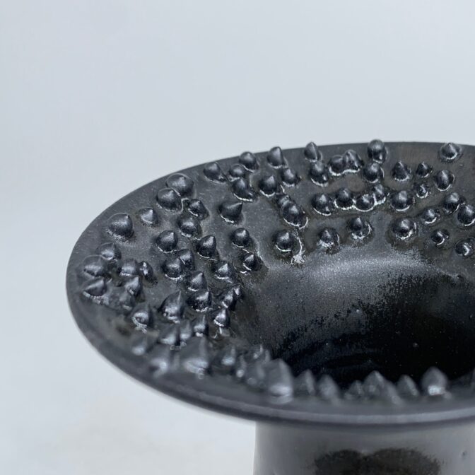 リム部分の内側に、小さいトゲをランダムに纏った小さな花器です。