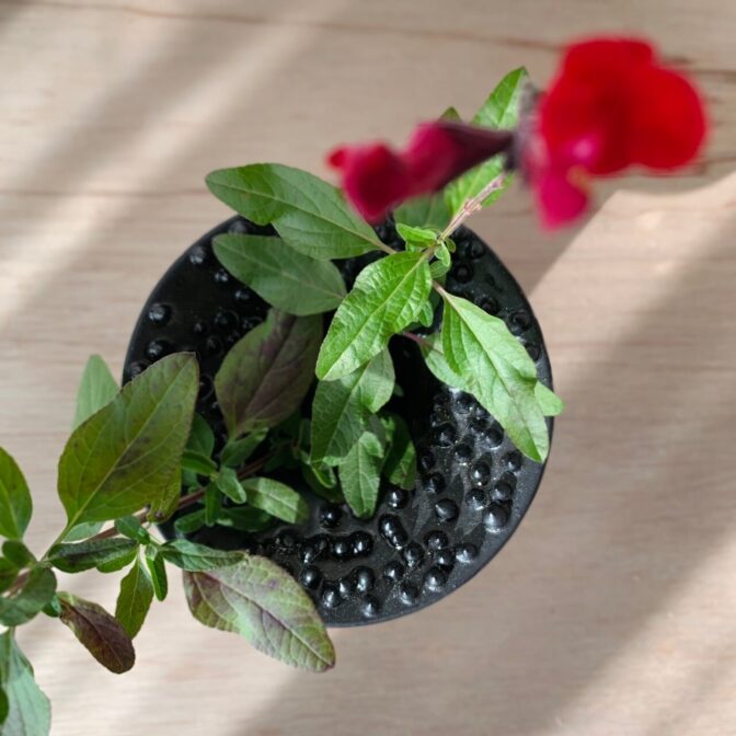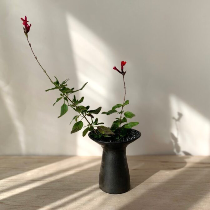ツルンとした本体の内側に小トゲが並んでいるので、飾る草花の種類によってはトゲに引っ掛けてのアレンジもできます。