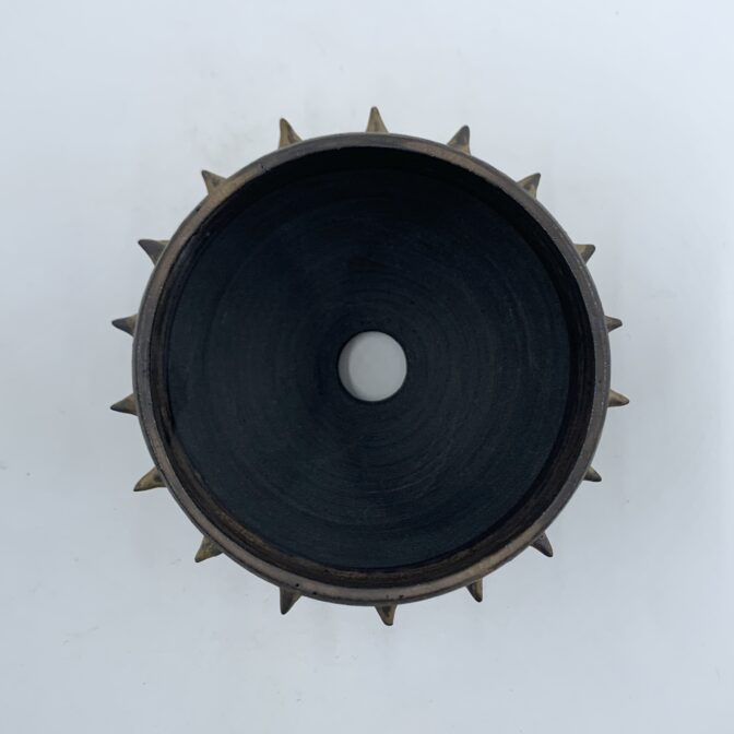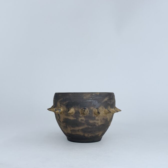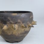 コロンとした種にトゲが一列並んでいるような、茶系の植木鉢です。