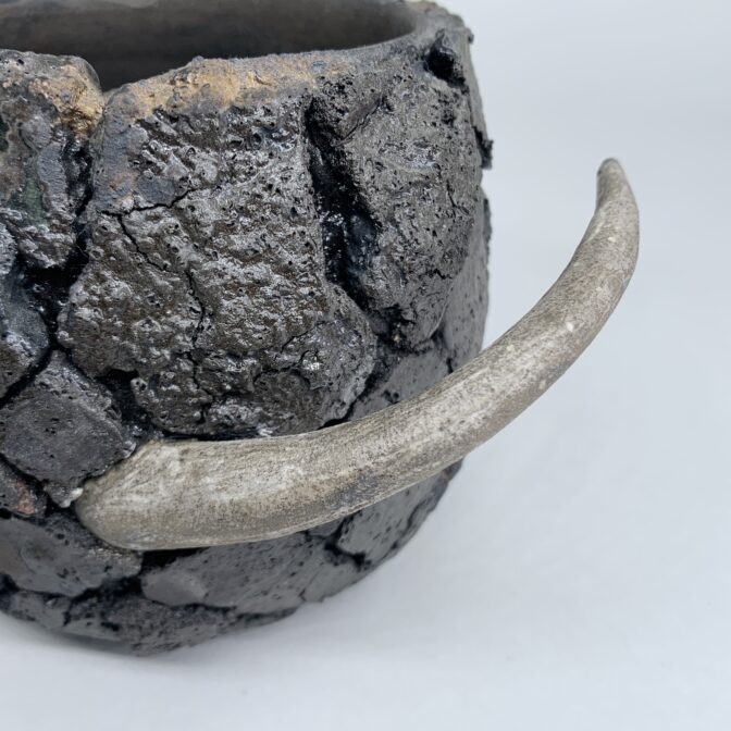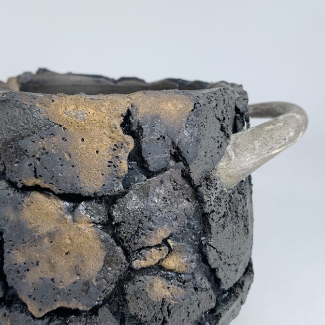 所々アンティークゴールドに染まる表面は、冷え固まった溶岩のようにも見えます。