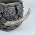 ゴツゴツとした質感の鉢に、2本のトゲが生えた植木鉢です。