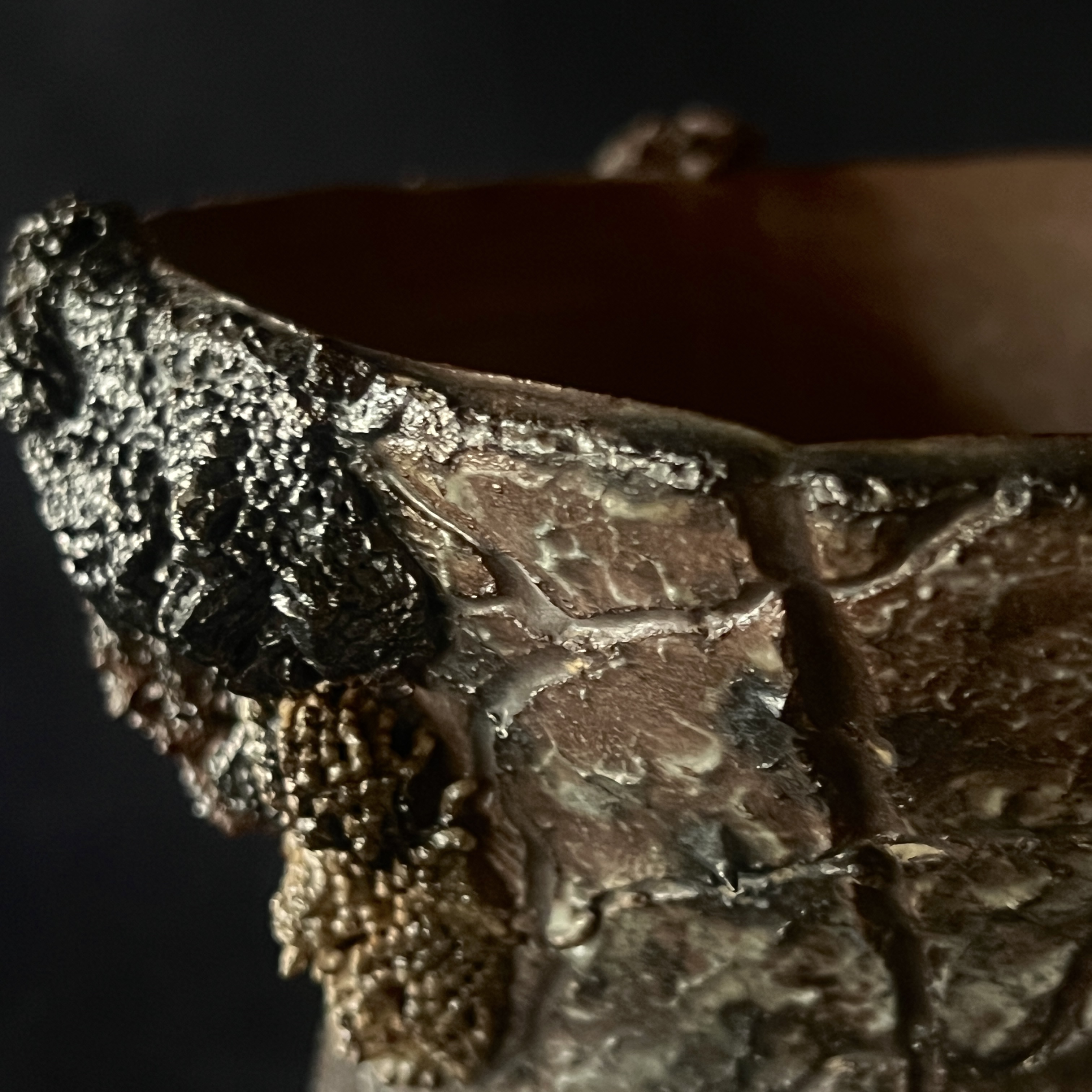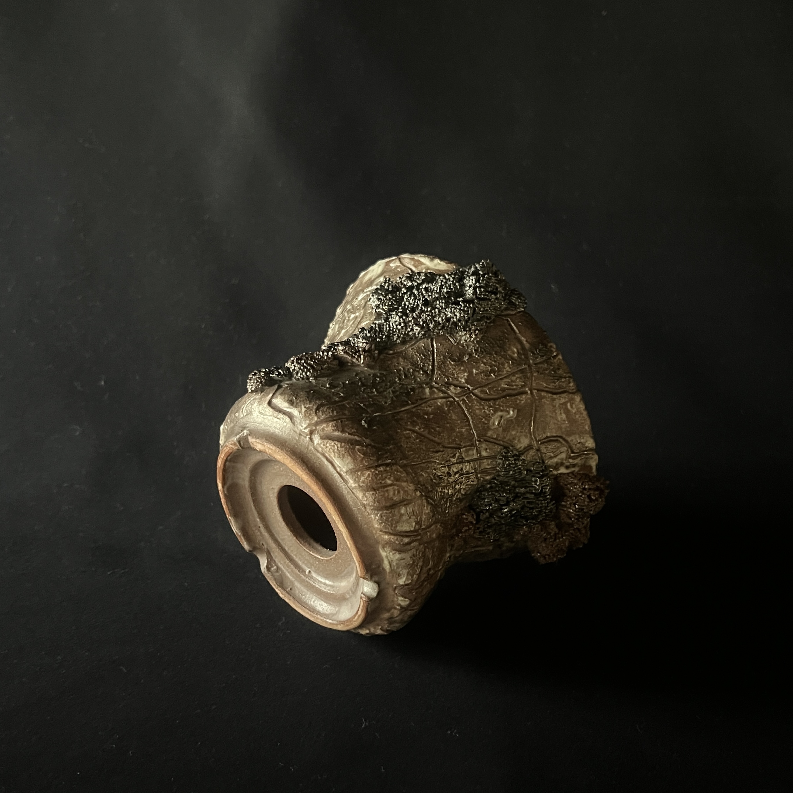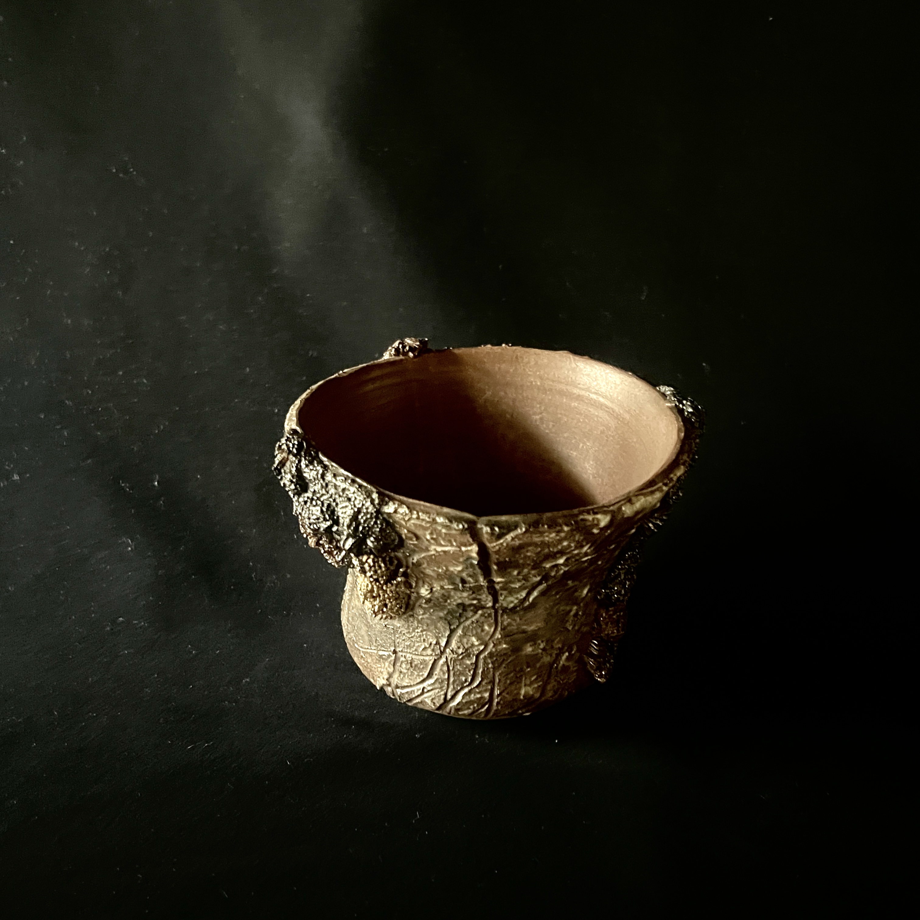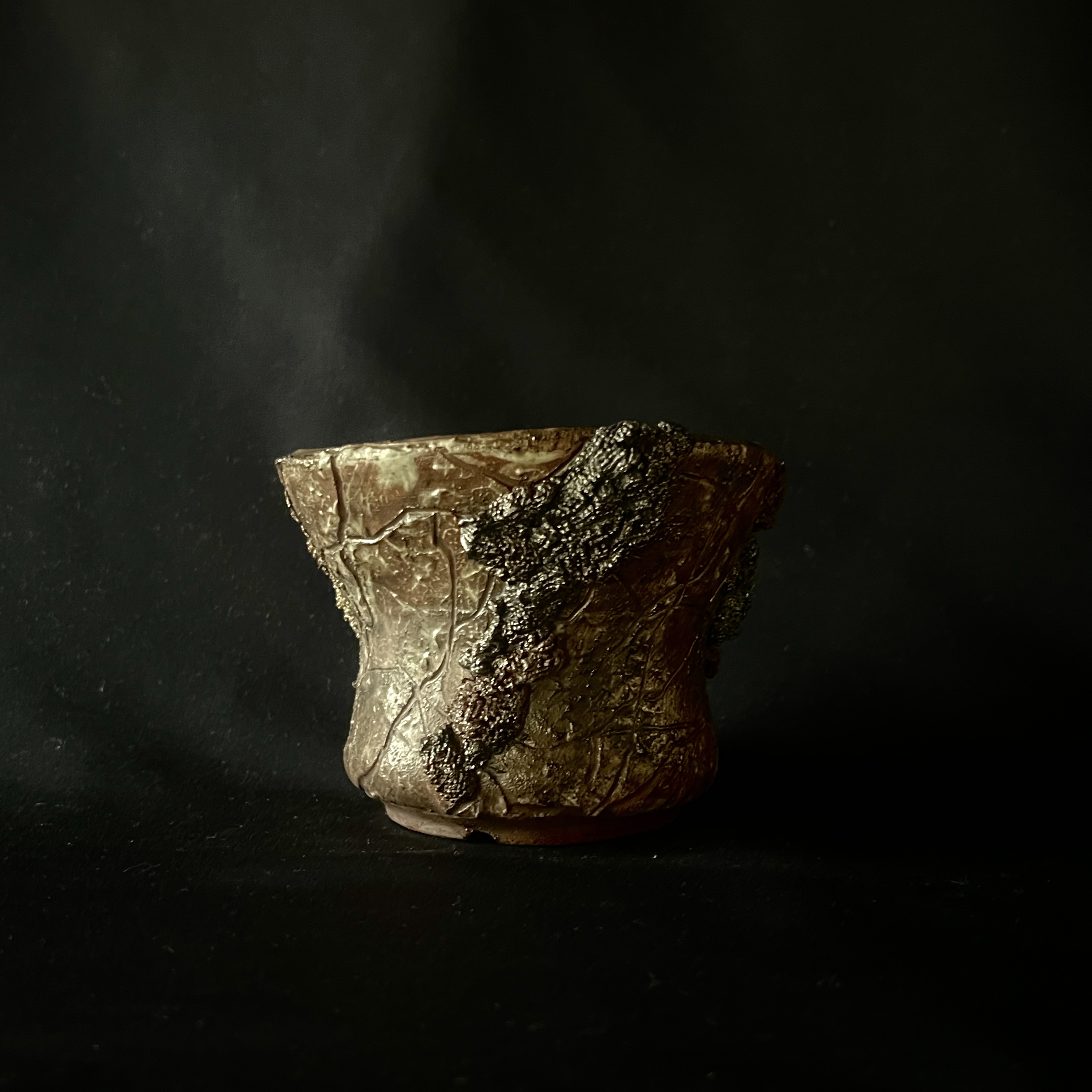 自然の壮大さを表現した岩のボディと、そこで繁殖する苔がコラボする風景を切り取った鉢。