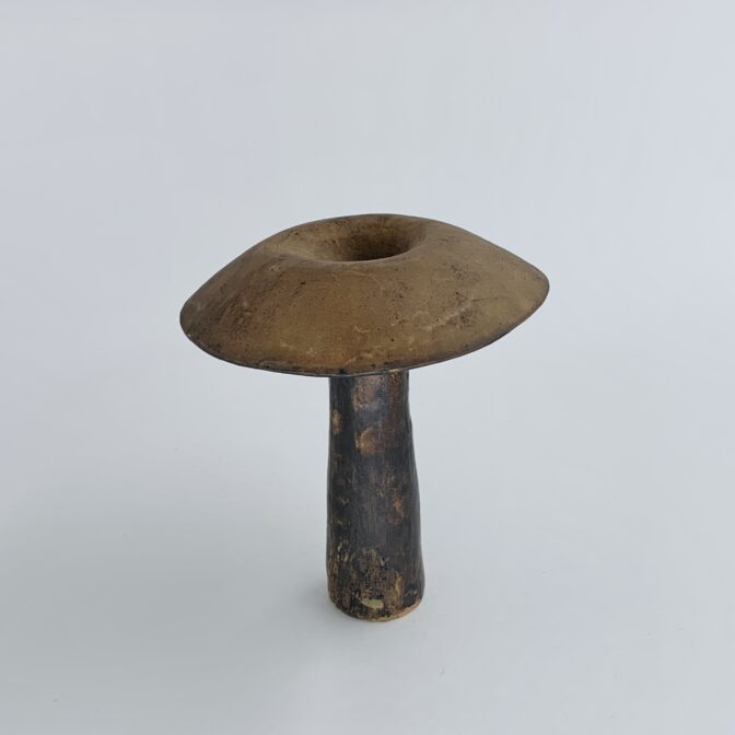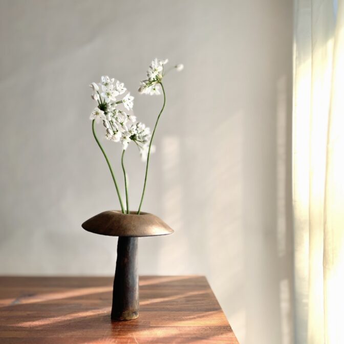キノコの本を見ているうちに、その愛らしいカタチを花器にしたくなりました。