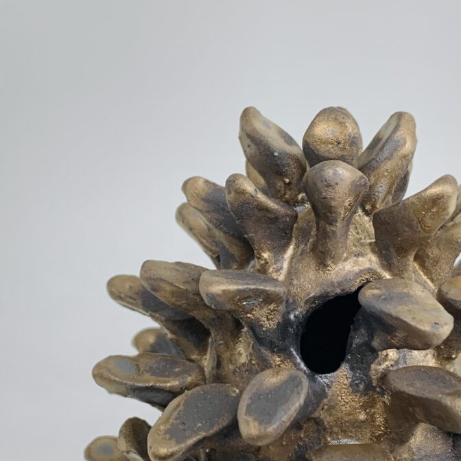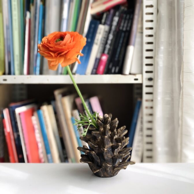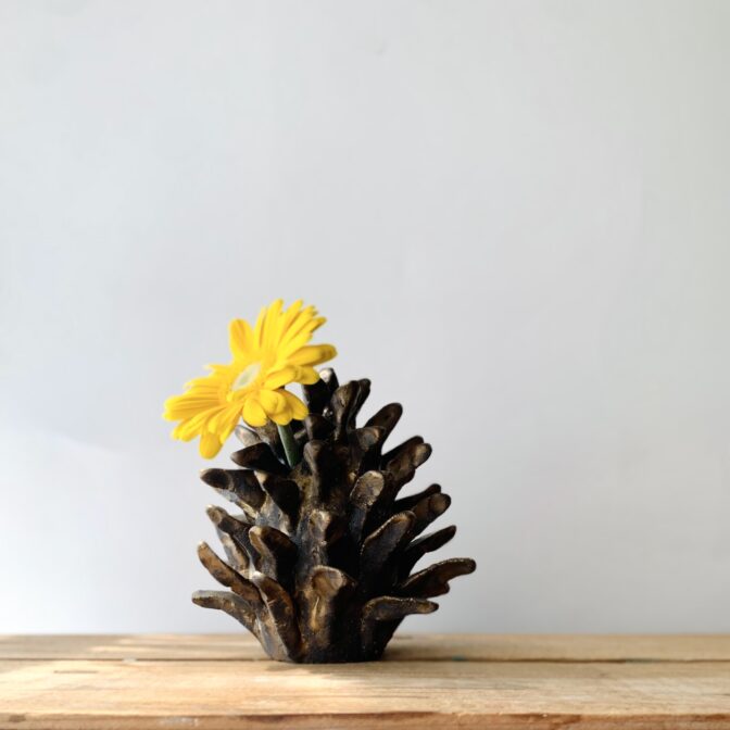 花器 | vase一輪挿し pinecone vase (antique gold) 通常価格 19800 円 (税込) sold out ※商品価格以外に別途送料(1回の注文につき1,000円)がかかります。 説明 size: 約φ12㎝ ✕ H12.5㎝ マツボックリがモチーフの一輪挿しです。 色形ともに本物のマツボックリに近づけてみました。 マツボックリから花やツルなどが出てくる様子は、現実ではありえないため風景的にも面白いかなと思います。 そのままインテリアとしても可愛らしい花器です。 コメントは受け付けていません。