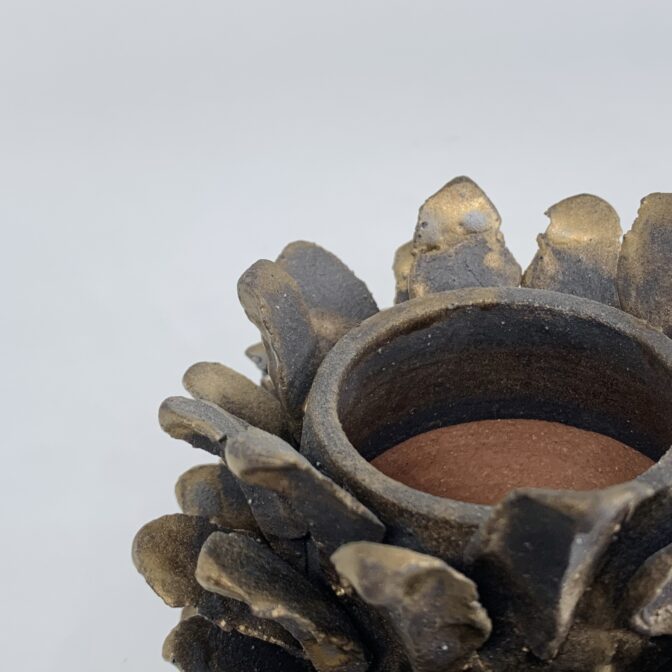 花器の pinecone vase (antique gold) と並べてもかわいいです。