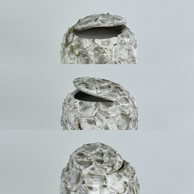 花器 | vase一輪挿し poppy seed vase 2 (gold × white) 通常価格 10780 円 (税込) 購入はこちら ※商品価格以外に別途送料(1回の注文につき1,000円)がかかります。 説明 size: 約φ8㎝ ✕ H11㎝ ポピーの種子がモチーフの一輪挿しです。 カパっと開いた口から花材が飛び出ている様に見えるのが特徴です。 本焼き後、薄く白金を焼き付けているので、使うごとに落ち着いた感じになるのもお楽しみください。 枝物や、色々なグリーン、ドライもの等何でもユニークに生けられると思います。 コメントは受け付けていません。