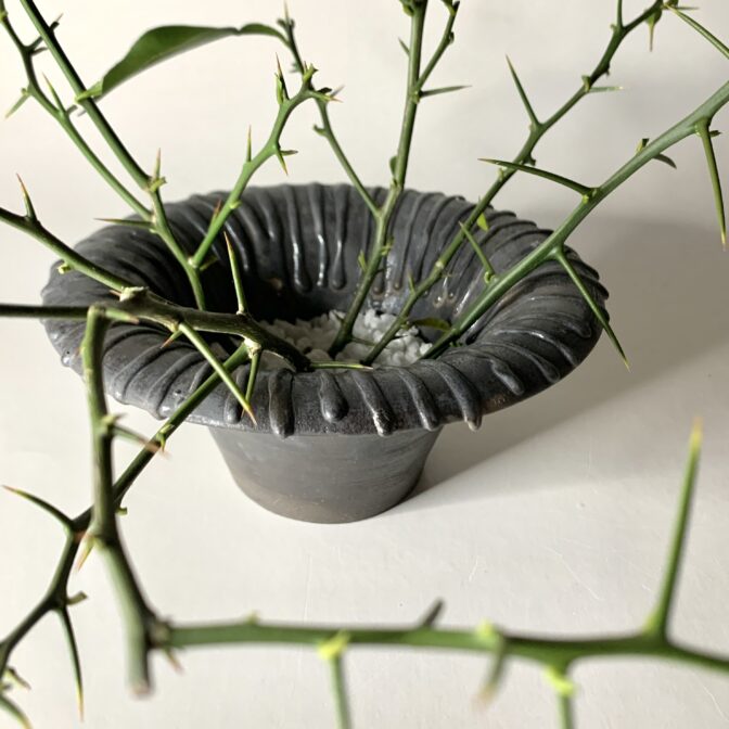 花器 | vase花器 sap vase (bronze) 通常価格 6050 円 (税込) 購入はこちら ※商品価格以外に別途送料(1回の注文につき1,000円)がかかります。 説明 size: 約φ15.5㎝ ✕ H7㎝ 木々の樹液が垂れているイメージの花器で、花器口が広いのが特徴です。 ブロンズ釉で植物の生々しさを打ち消した感じになりました。 花留め、スポンジ等を使用し丈の高い花材も安定します。 コメントは受け付けていません。