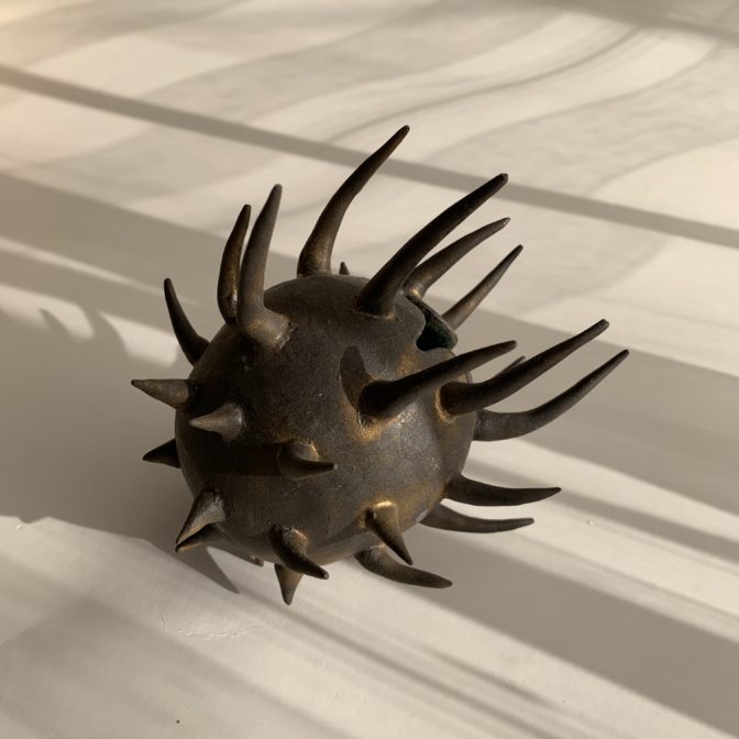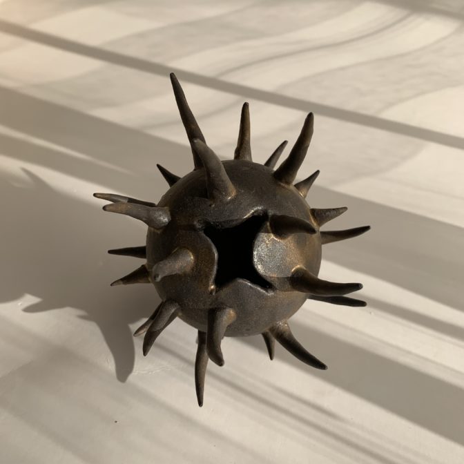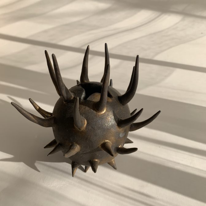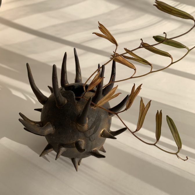 上に長いトゲのある一輪挿しで、植物の種子(オナモミ)からイメージしました。