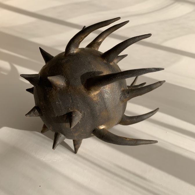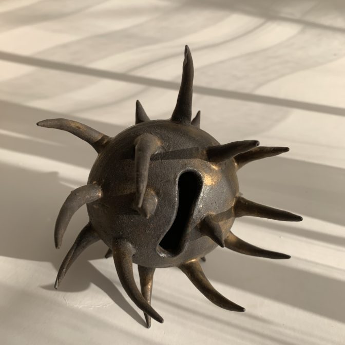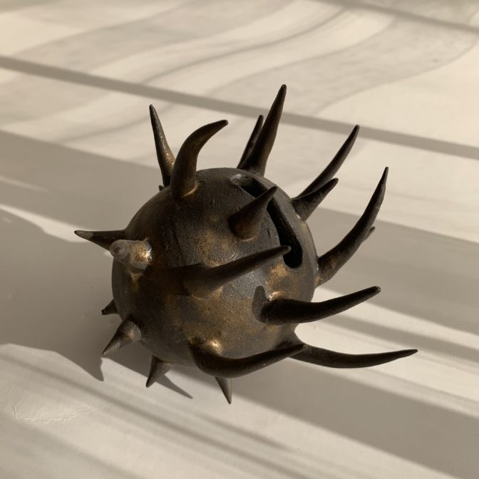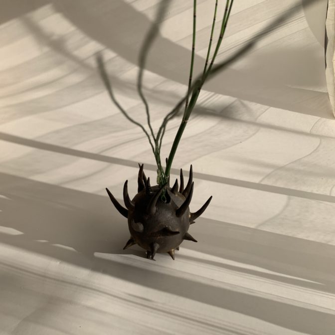 上に長いトゲのある一輪挿しで、植物の種子(オナモミ)からイメージしました。