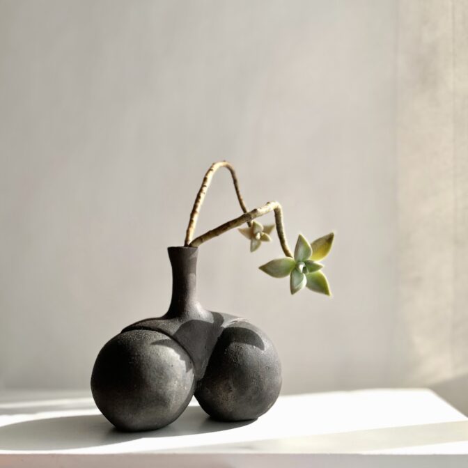 花器 | vase一輪挿し seed vase 2 (dull silver) 通常価格 20900 円 (税込) 購入はこちら ※商品価格以外に別途送料(1回の注文につき1,000円)がかかります。 説明 size: 約13㎝ ✕ H12㎝ 植物の種のカタチから発想して作った一輪挿しです。 2個の球体とそれをつなぐ部分の土を微妙に変えています。 銀彩を使用しているので、使っているうちに色が変化するのもお楽しみください。 コメントは受け付けていません。