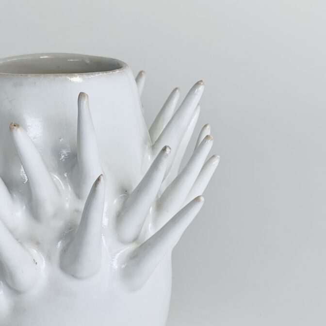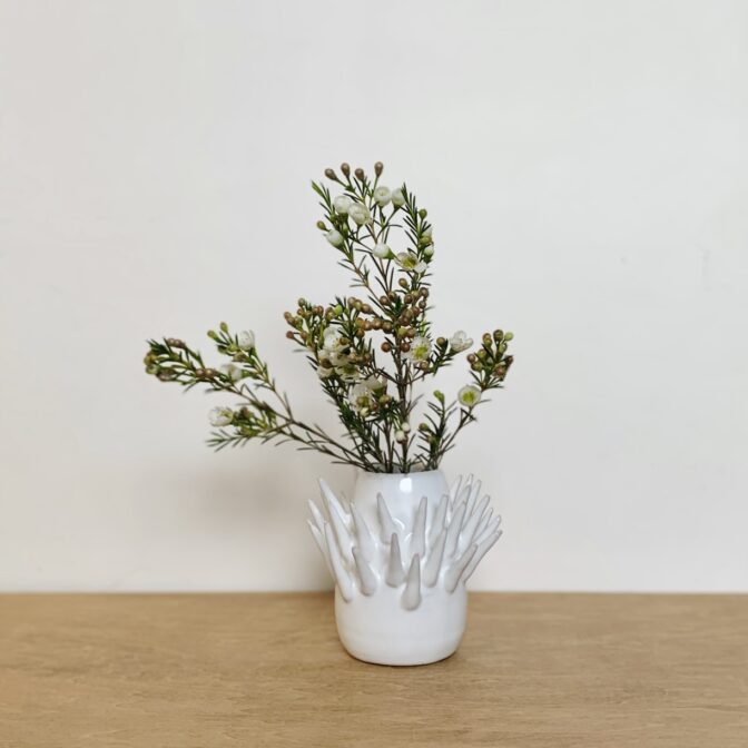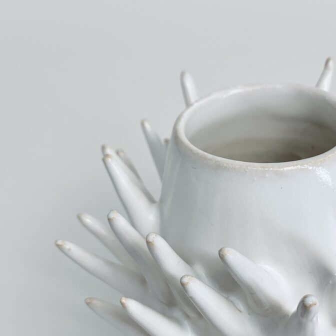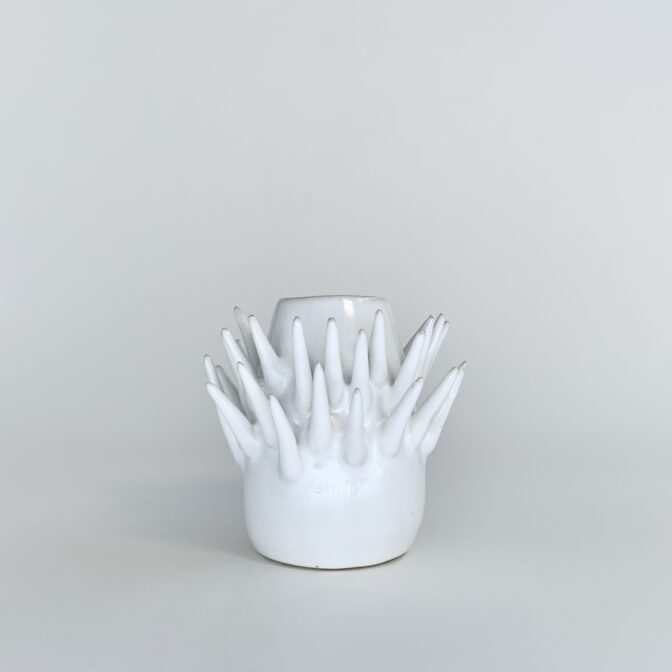 花器 | vase花器 tefrocactus vase (white) 通常価格 16500 円 (税込) 購入はこちら ※商品価格以外に別途送料(1回の注文につき1,000円)がかかります。 説明 size: 約φ11.5㎝ ✕ H10㎝ 個性的なトゲの出し方。何でそこから?そこは出ないの? テフロカクタスという、不思議なトゲを持つサボテンがモチーフです。 オブジェとしてももちろん良いですが、生ける植物によって不思議なシルエットが生まれると思います。 コメントは受け付けていません。