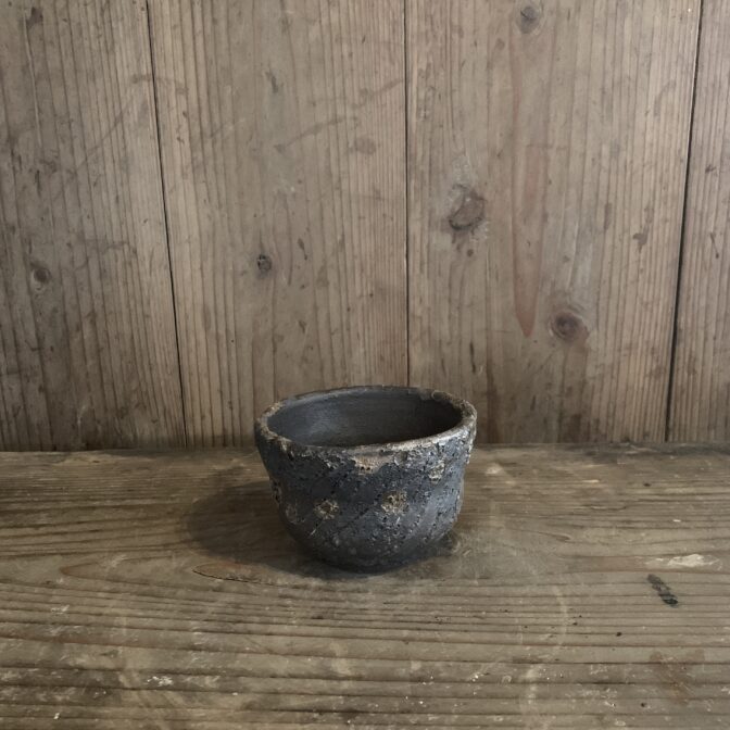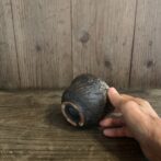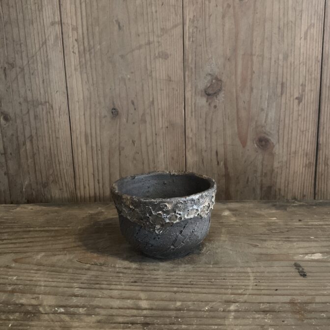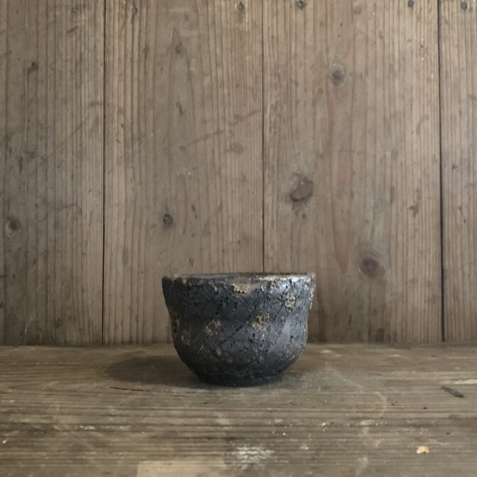 植木鉢| pot鉢 Terra(SM) sumikuro 通常価格 4620 円 (税込) 購入はこちら ※商品価格以外に別途送料(1回の注文につき1,000円)がかかります。 説明 size: 約φ9.5㎝ ✕ H6.5㎝(底穴 φ2.4㎝) 全ての生き物は、大地の上で優しく包まれて生きている。 時には、荒々しい一面を目の当たりにして人類はビビってしまう。 いずれにしても、地球に住む生物はTerraにお世話になっている。 そんな優しくもあり、厳しくもある大地を表現しました。 ベースは炭黒の発泡釉で、口辺部分から胴にかけてブロンズ色のポイントがあります。 コメントは受け付けていません。