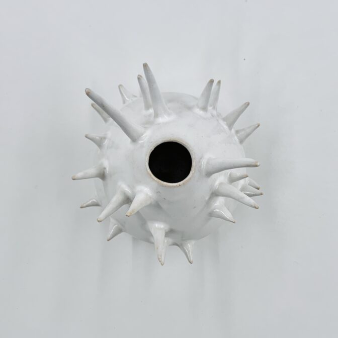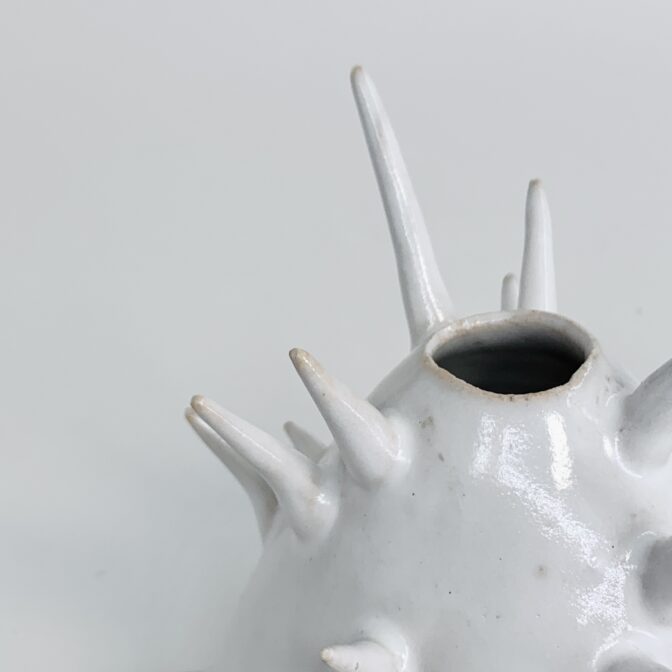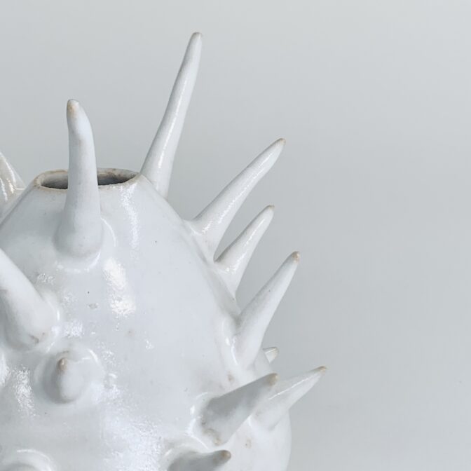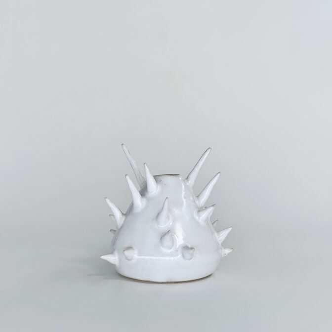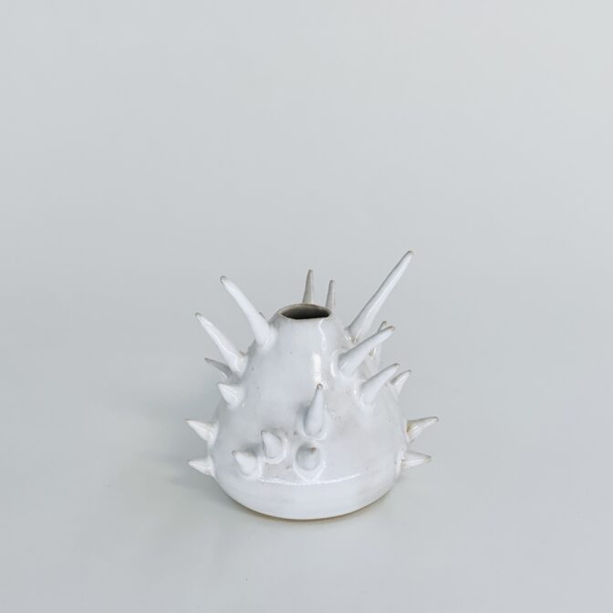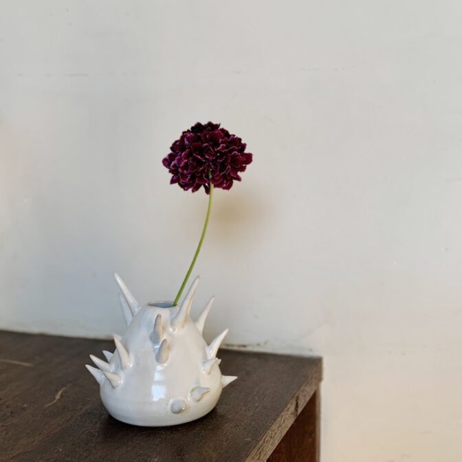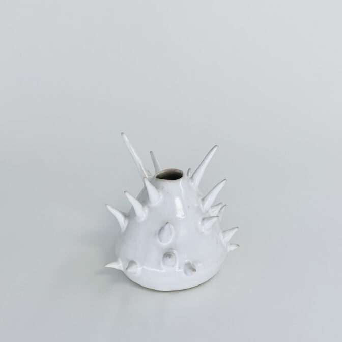 花器 | vase一輪挿し thorn vase 1 (white) 通常価格 15400 円 (税込) 購入はこちら ※商品価格以外に別途送料(1回の注文につき1,000円)がかかります。 説明 size: 約 φ11㎝ ✕ H11㎝ サボテンではない植物でなくても、トゲのある植物はたくさん存在します。 必要のないものは退化していくわけだけど、必要不可欠なものとして色々なトゲが存在するわけです。 そんなトゲを表現しました。 三角錐型なので安定感もあり、植物をそのまま挿すのはもちろん、蔓性植物をトゲに巻きつけたりしてお楽しみください。 コメントは受け付けていません。